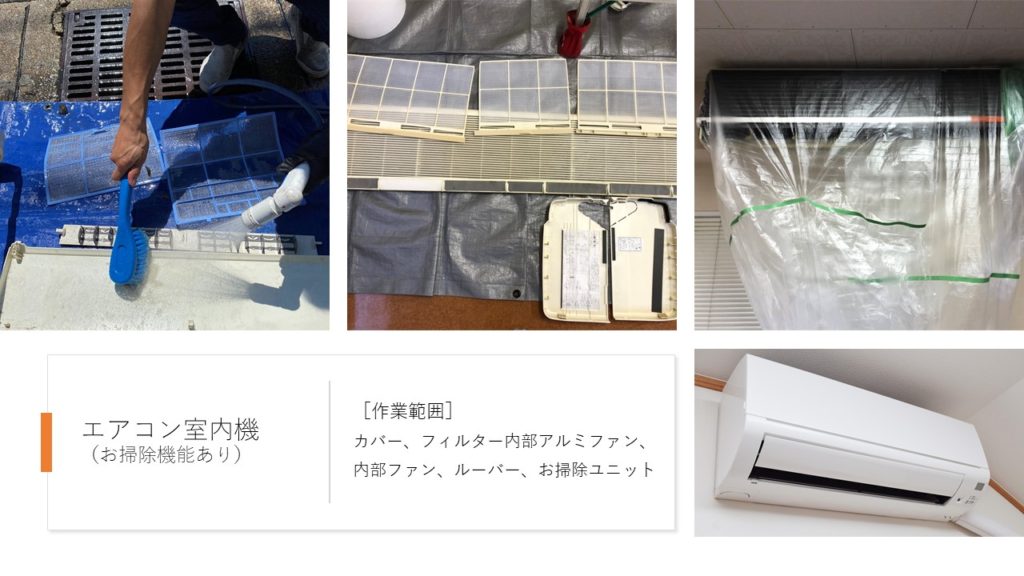 [作業範囲]カバー、フィルター内部アルミファン、内部ファン、ルーバー、お掃除ユニット