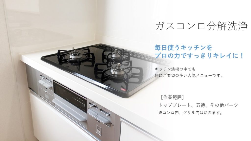 [作業範囲] トッププレート、五徳、その他パーツ ※コンロ内、グリル内は除きます。